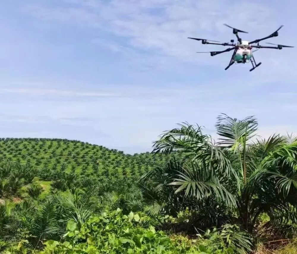 无人机在马来西亚智慧棕榈园开展识别作业。(受访者供图)