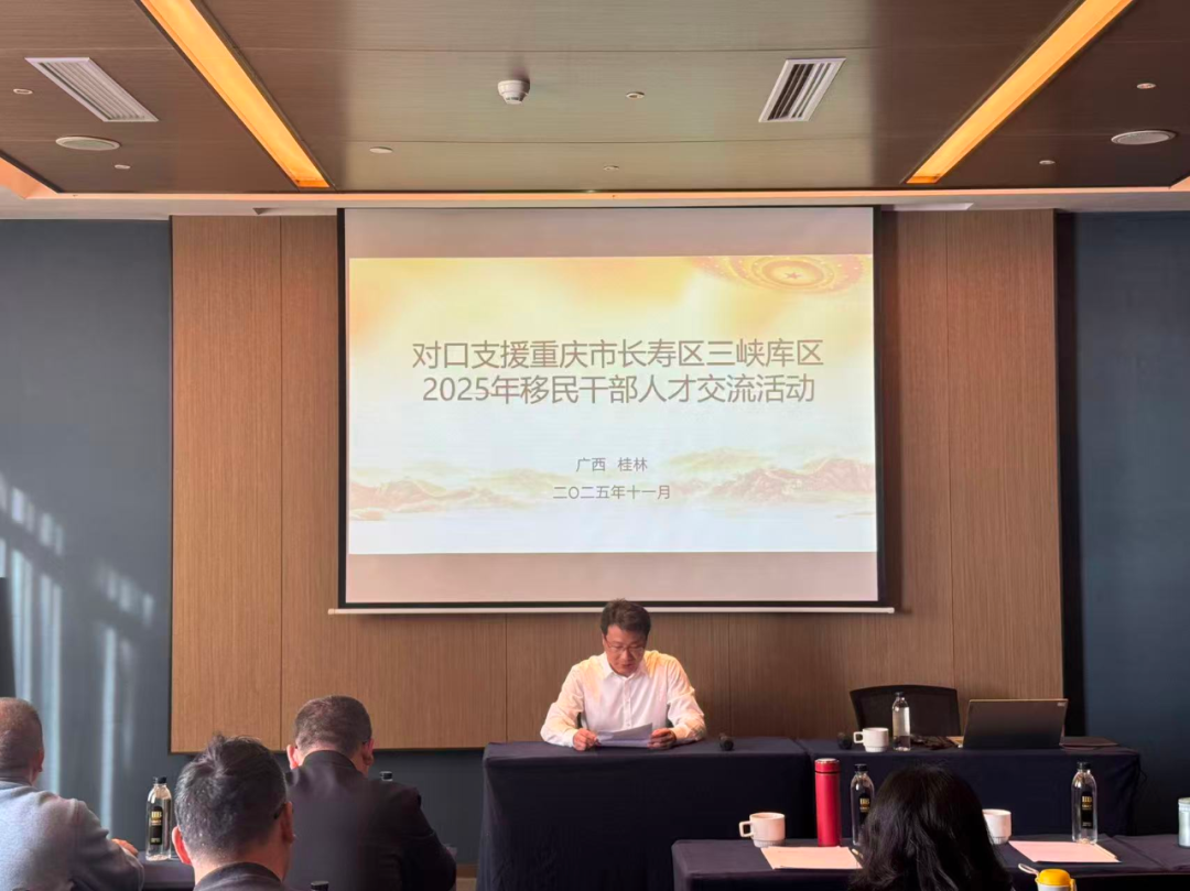 近日,由自治区园区投促中心主办的2025年桂长两地对口支援移民干部人才交流活动在桂林举办。重庆市长寿区水利局、菩提街道、凤城街道、江南街道、菩提街道、但渡镇等5个乡镇共22名科室、乡镇负责人及移民干部参加。