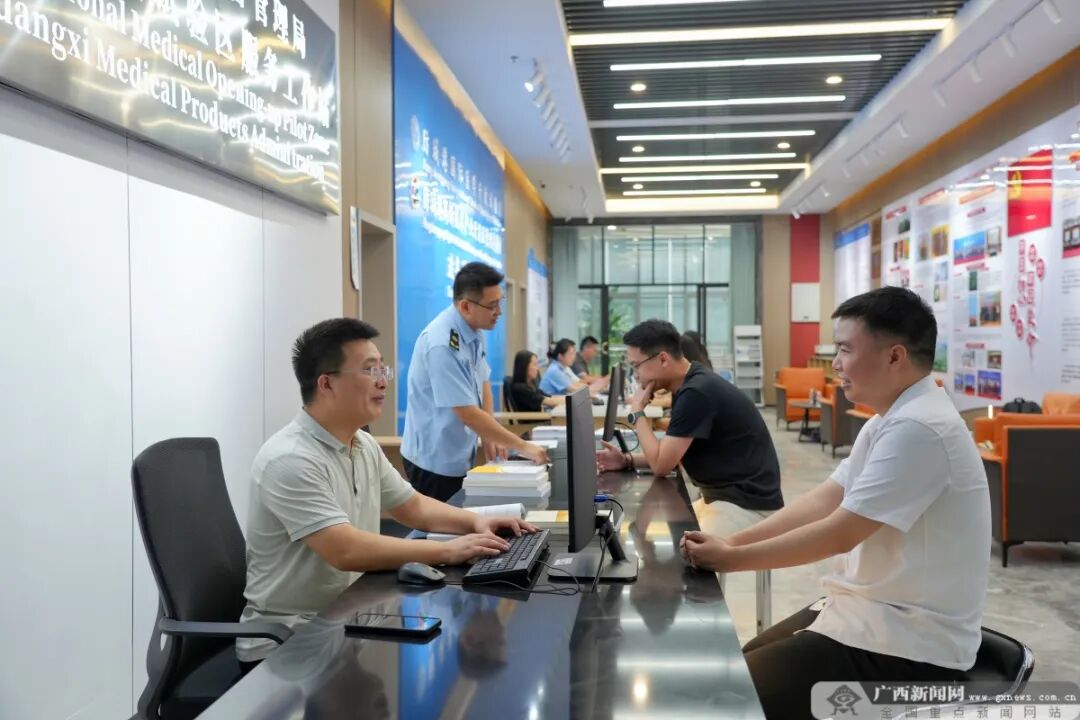 防城港市在试验区设立的巡回政务服务窗口,成为企业落地后的“第一份惊喜”。该窗口整合市场监管、税务等13个高频事项,将原本分散在4公里外政务服务中心的业务,直接“搬”到企业门口。