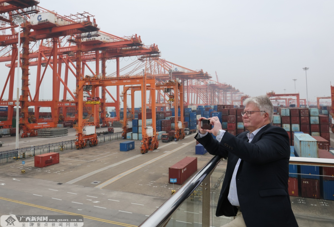 近日,由约旦、哥伦比亚、韩国等20多个国家的驻华大使和外交官组成的驻华使节代表团来到钦州市,参观北部湾港智慧港口创新中心,实地了解广西参与共建西部陆海新通道的阶段性成果。广西云-广西日报记者 梁凯昌 摄