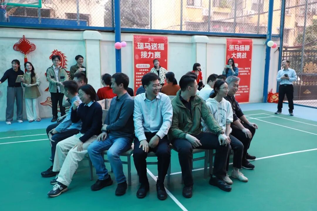 随后,活动进入趣味盎然、协作共赢的团建环节。本环节精心设计了四个寓意吉祥、形式活泼的团队竞赛项目:“策马扬鞭”大挑战、“瑞马送福”接力赛、“一马当先”抢凳子、“策马奔腾”袋鼠跳,充分展现了中心干部职工团结协作、活力四射的精神面貌,进一步熔炼了团队精神。团建集体活动结束后,现场设立了两个主题游园摊位:“马到成功”套福圈、“一马平川”滚滚乐,大家进入轻松愉快的自由游园环节。