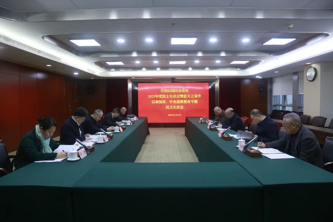 根据中央和自治区党委部署要求,2月10日,自治区园区办党组召开2025年度民主生活会暨蓝天立案件以案促改、中央巡视整改专题民主生活会,深入学习贯彻习近平新时代中国特色社会主义思想,全面落实党的二十届四中全会精神,以打攻坚战、持久战的决心和恒心,锲而不舍落实中央八项规定及其实施细则精神,推进作风建设常态化长效化,深刻剖析蓝天立案件以案促改、以案促治,扎实推进中央巡视反馈意见整改落实,以优良作风凝心聚力、真抓实干,奋力谱写中国式现代化广西篇章。自治区园区办党组书记、主任邹展业主持会议并讲话,自治区纪委监委驻自治区金融办纪检监察组二级巡视员李临福到会指导并点评。