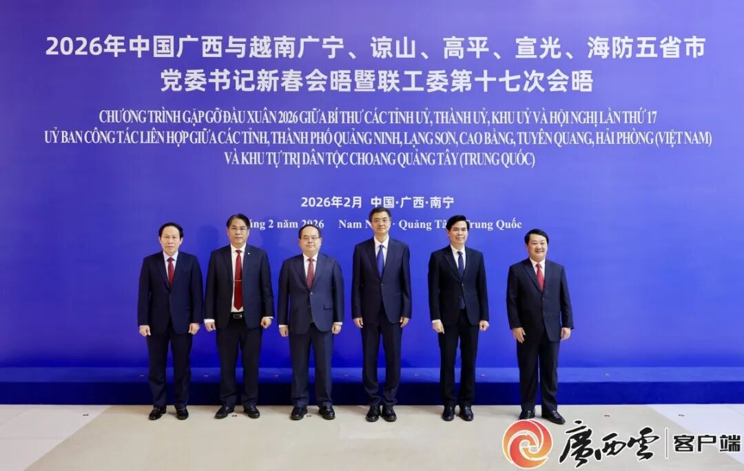 2月10日至11日,2026年中国广西与越南五省市党委书记新春会晤活动在南宁举行。广西壮族自治区党委书记陈刚与越南广宁省委书记管明强、谅山省委书记黄国庆、高平省委书记潘升安、宣光省委书记侯阿令、海防市委书记黎进州进行工作会谈,深入贯彻落实习近平总书记同越南党和国家领导人达成的重要共识,共叙友好情谊,共商合作大计,共谋互利共赢。中国驻越南大使何炜、中联部副部长陈洲、越南驻华大使范清平出席会议并致辞。