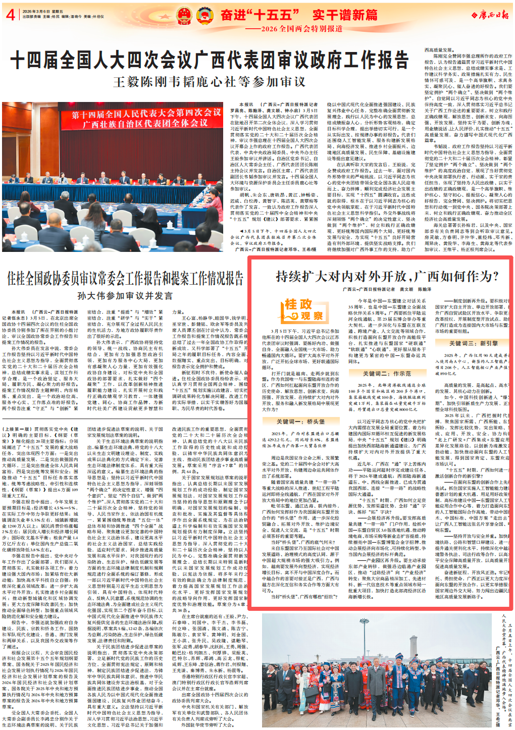 毗邻东盟、通江达海、联内接外,广西如何发挥好作为我国面向东盟开放合作的“桥头堡”作用,进一步深化经贸融合、拓展对外开放、维护边境安全、促进人文交流,是“十五五”时期必须答好的重要考题。