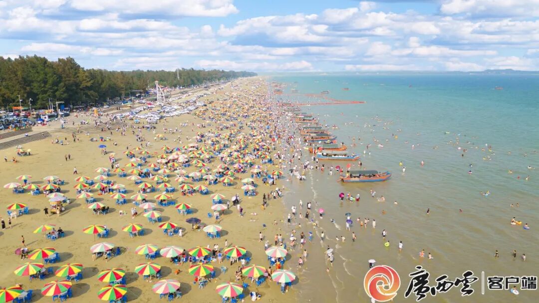 东兴市金滩景区游人如织。记者 苑长军 摄