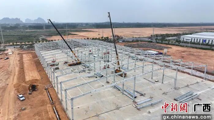 近日,走进位于粤桂产业循环园区的贵港理文林浆纸一体化全产业链项目施工现场,仓库的主体结构正在加速搭建,一派热火朝天的建设景象。