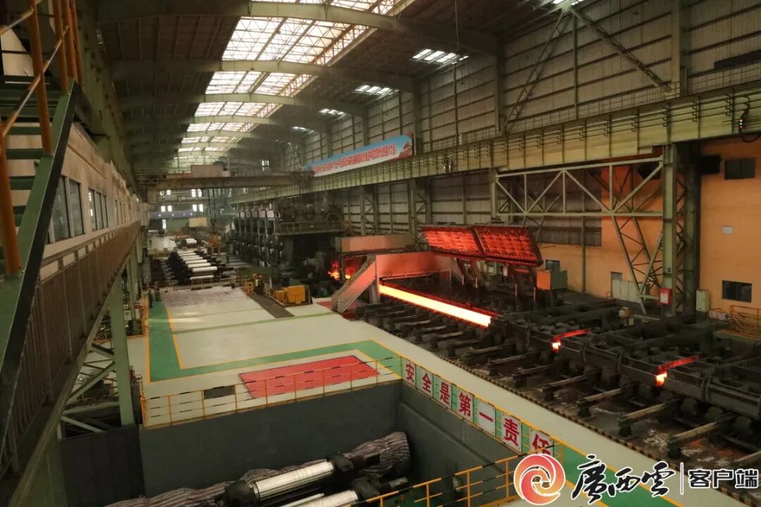 3月24日,在位于防城港经济技术开发区的广西盛隆冶金有限公司生产车间里,新出炉的钢板如流水般自行通过生产线,机器狗沿着生产线来回巡检,通道玻璃幕墙上的钢铁数字孪生系统正实时显示各项参数。
