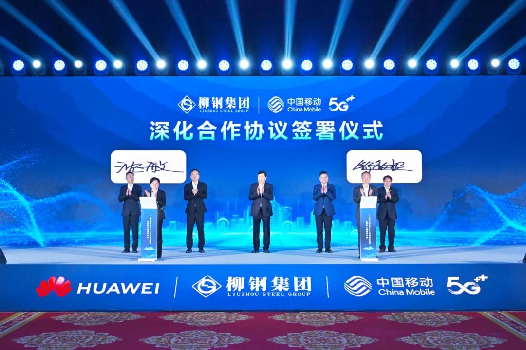大会现场进行了深化合作协议签署仪式。柳钢集团副总经理沈敏分别与华为公司华为云广西总经理蒋贵川、中国移动广西公司副总经理舒敏根签署深化合作协议。李斌、丁剑岚、何载福、梁涛、王一秋见证签约。