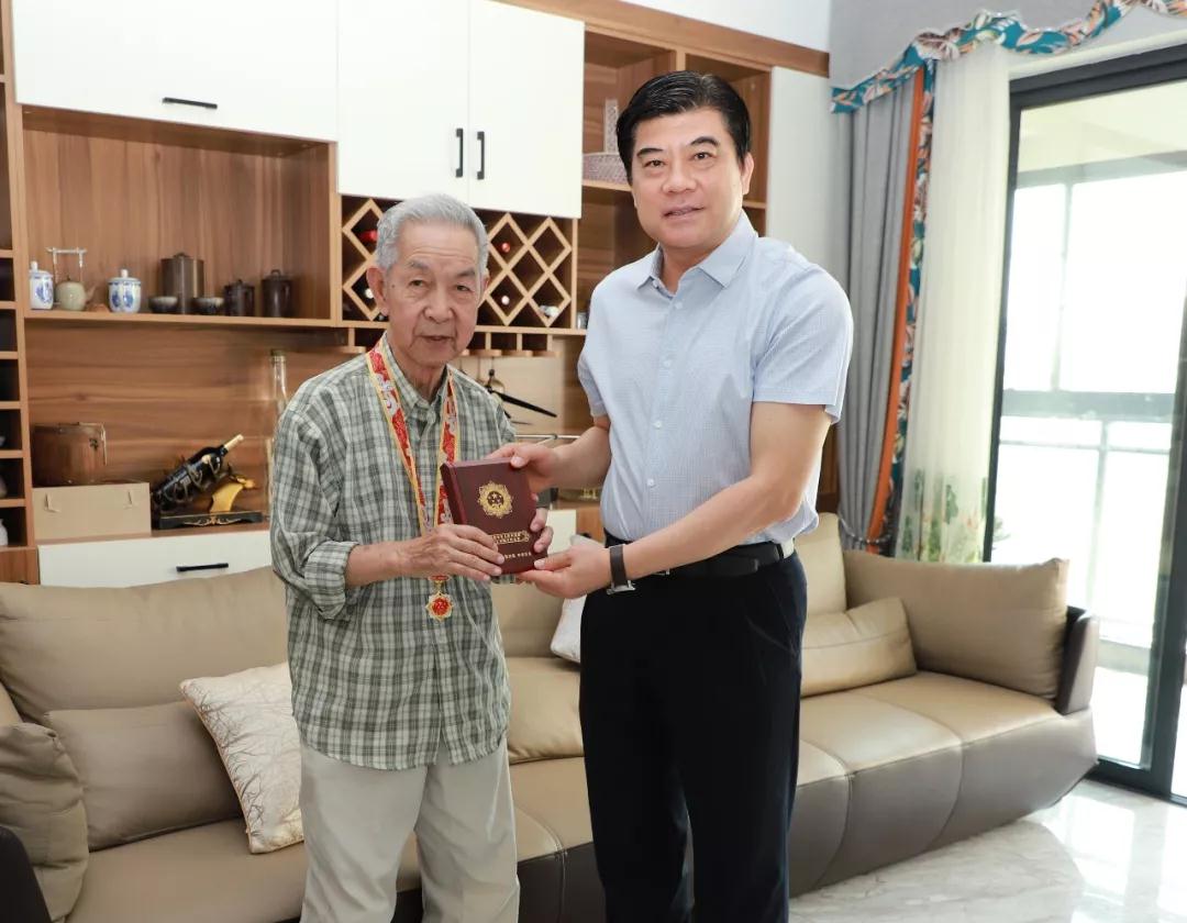 9月25日上午,在全区人民喜迎中华人民共和国成立70周年之际,自治区投资促进局党组书记、局长,自治区经济技术协作办公室主任杨春庭,看望慰问了本局离休老干部谢伯平同志。杨春庭首先向谢老及其家人转达了自治区党委、自治区政府的深切关怀和局党组的亲切问候,祝福谢老身体康健、福寿延绵!杨春庭关心地询问了谢老的身体状况、生活情况,为他佩带了庆祝中华人民共和国成立70周年纪念勋章并发放纪念牌和慰问金。
