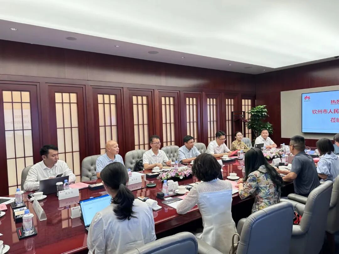 在深圳市,钦州市联合华为技术有限公司举办中国—东盟跨境产业合作区钦州片区招商恳谈会,市投资促进局作投资项目推介,和华为生态合作伙伴等与会企业家代表就意向项目进行深入交流。